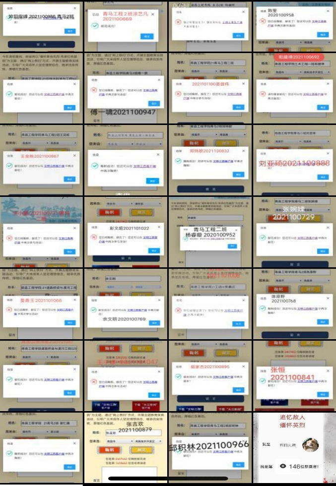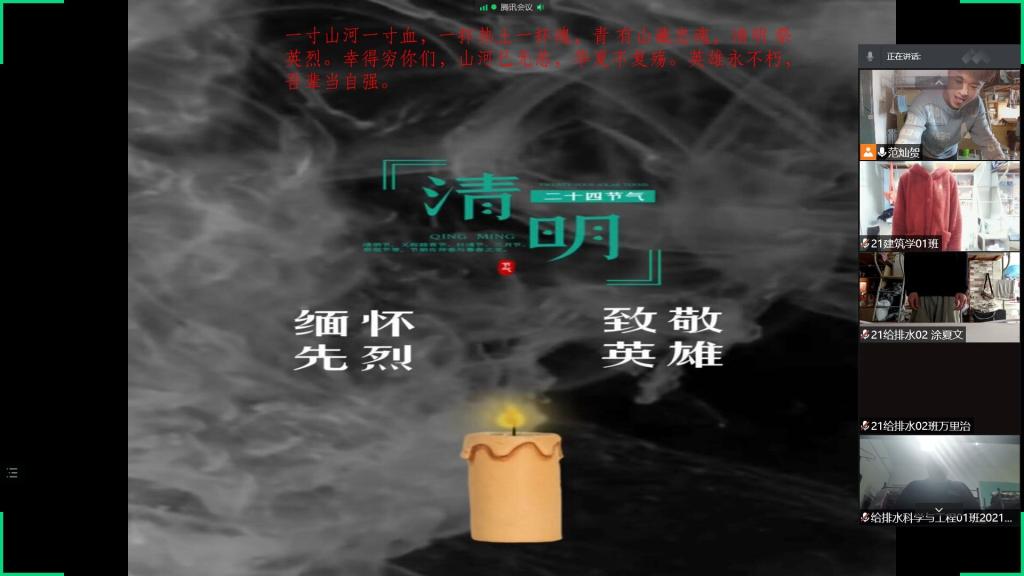 本次活动由青马工程培训班班长范灿贺、张明辉主持。在他们的带领下,青马工程培训班全体学员首先向缅怀革命先烈志敬,集体默哀半分钟。鲜花献英烈,哀思祭忠魂,通过“中华英烈网”等平台参与留言互动,线上鲜花等形式,寄托对英烈的哀思,表达对先烈的崇敬之心、传承之志。