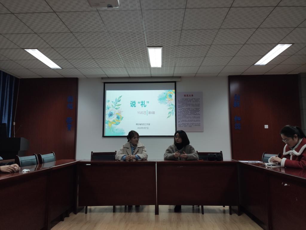 3月7日,榫卯辅导员工作室“YUE己”沙龙第5期在土建楼B207-1举行,此次沙龙邀请外国语公司肖芬老师做嘉宾,工作室负责人万旎主持。