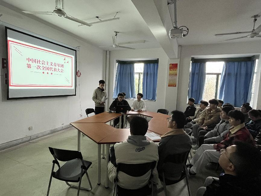 第一期团日活动来到19道路桥梁与渡河工程01班团支部,团支部书记熊棋主持,40余名团员青年齐聚学八栋新时代文明实践中心,开展党史、团史微分享与交流讨论。
