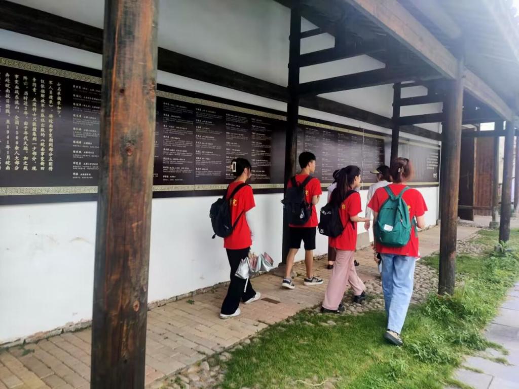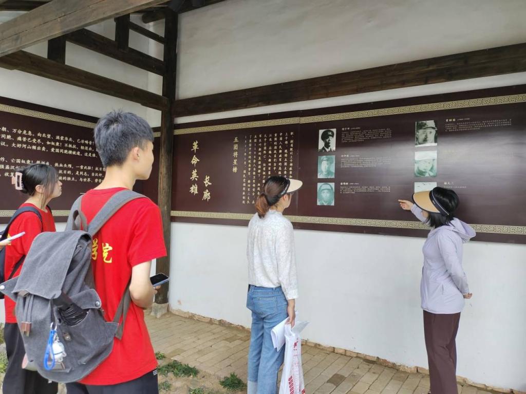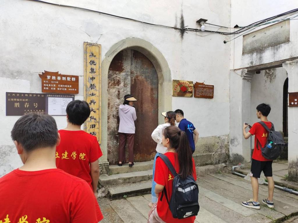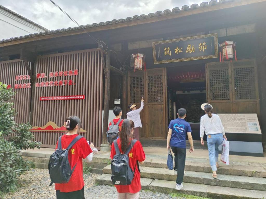 为深入学习贯彻党的二十大精神,用好红色资源,深入开展社会主义核心价值观宣传教育,让革命旧址建筑保护“活”起来,同学们在讲解员的带领下参观了祝氏老宅、东祝宗祠、新四军石塘整编纪念馆等建筑。同时,实践团开展红色故事云宣讲活动,从历史内涵、建筑特征等方面在旧址中实地讲述挖掘到的红色故事,让爱国主义教育更加新颖、更有活力。实践团宣讲队员潘晓雨表示“红色故事云宣讲,既是一次锻炼,也是一次创新;既是一份荣誉,更是一种责任。我会用自己的努力,讲好红色故事。”