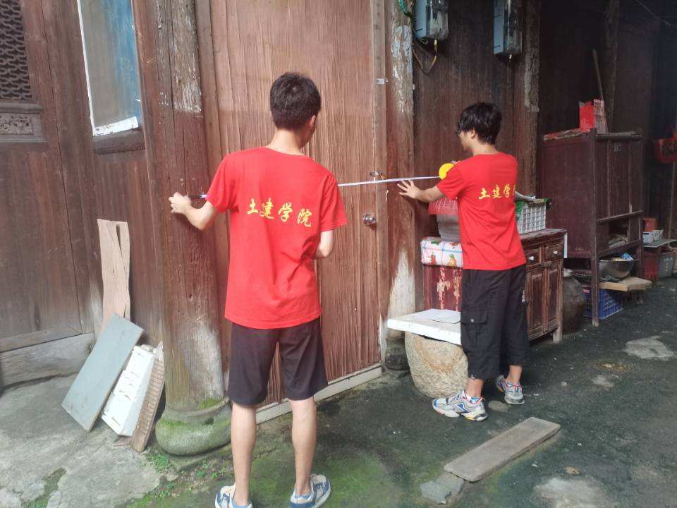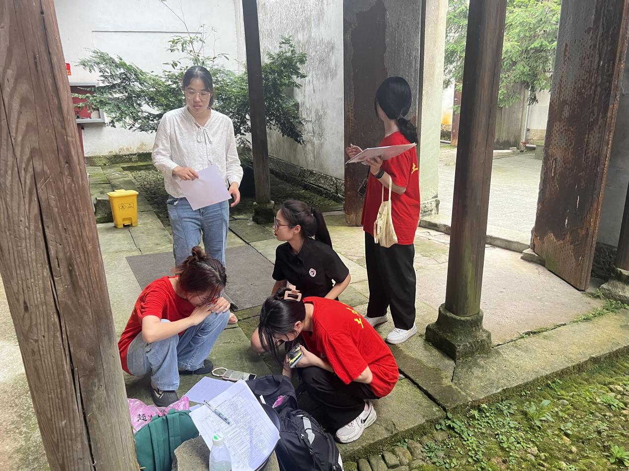 首先,同学们通过前期资料整理已掌握部分石塘镇革命旧址建筑的基本信息。在此基础上,小组成员对祝氏老宅、东祝宗祠、新四军石塘整编纪念馆等建筑进行实地观察和建筑测绘,总结出在建筑保护修缮过程中出现的“革命旧址整体风貌及格局保存完整度”、“对外开放程度”“新老材料的交叉使用”等问题。同时,实践团利用访谈调查法、问卷调查法,了解到当地居民对建筑保护的意见与意愿,更助于调查内容与实际情况相结合,为下一步提出有效的方案奠定基础。实践团成员在此次革命旧址建筑调研过程中稳中求进,在接下来的时间中,将继续发扬老员工勤于思考、善于探究的精神,利用所学专业知识保护文化,紧跟时代号召。(文/黄航 图/万里治)