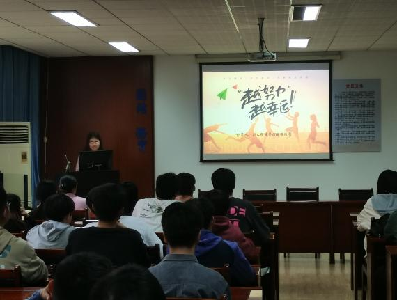 国家奖学金获得者项逸萱同学从思想道德、学习竞赛、工作经历、实践生活四个方面向大家介绍了老员工活应该做什么、怎么过,最后提醒同学们不忘初心,努力学习。
