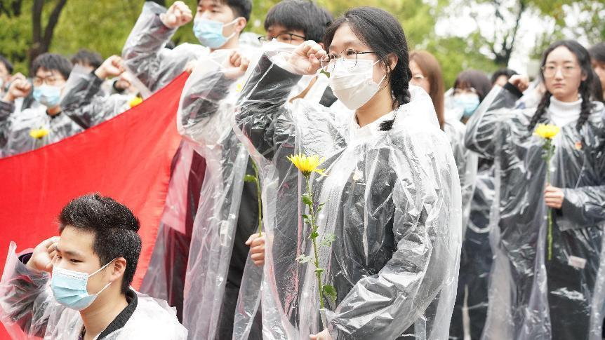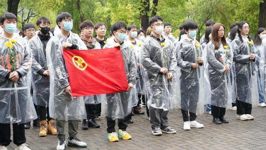 上午十点整,庄严高亢的《义勇军进行曲》奏响,全场整齐列队高唱中华人民共和国国歌。随后,全体成员庄严肃立,鞠躬默哀,并依次向先烈雕塑前献上鲜花,缓步绕纪念碑瞻仰一圈。紧接着全体成员庄重宣誓,铿锵有力的铮铮誓言响彻整个陈列馆。