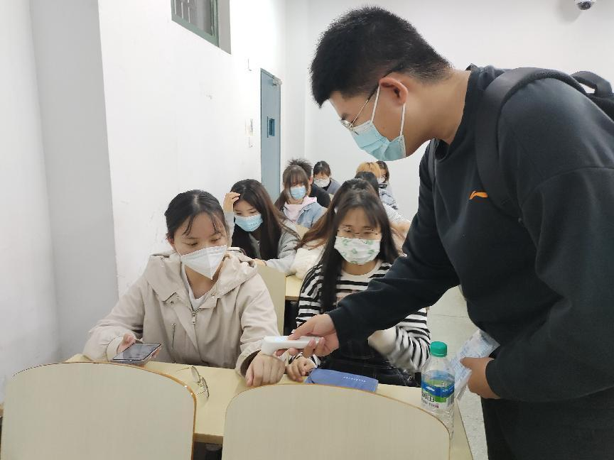 为方便同学、服务同学,公司团委纪检部立足本职工作,做到科学防疫,耐心地为同学们进行体温检测,将口罩分发到每一位同学的手中,并提醒同学们在公共场所记得戴好口罩,做好防护措施。