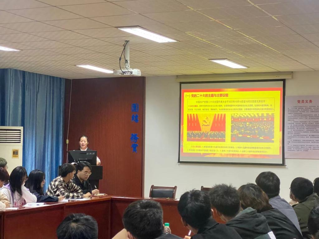 会上,万珊对党的二十大重要意义、党的二十大主题与主要议程、基本概况进行了阐述。鼓励广大团学干部要坚定捍卫“两个确立”,坚决做到“两个维护”,肩负时代使命,将“小我”融入到祖国发展的“大我”之中。