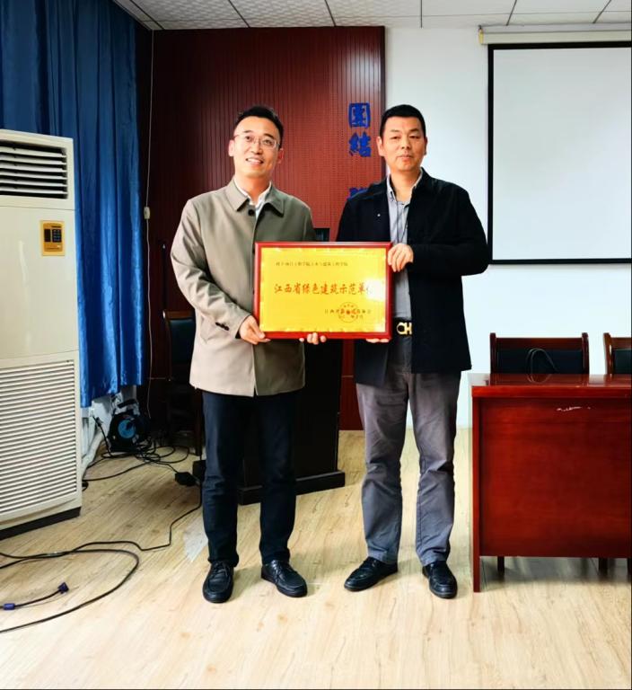 讲座前,刘谨教授代表江西省绿色建筑协会为公司颁授会员单位和江西省绿色建筑示范单位。(文/图 李森)
