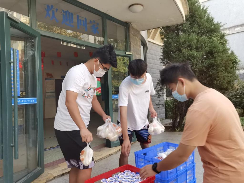 在这特殊的时刻,为保证新生开学的生活需要,公司统一组织志愿者送餐及购买的生活用品到各个楼层,他们用心准备、努力配送,早餐午餐晚餐,暖心暖胃。争分夺秒,往返奔波,一趟一趟地搬运。志愿者们努力配送将热乎乎的饭菜送到2022级新生手中,全力保障同学们的生活所需,用爱心之举让疫情防控工作有力度的同时也充满着温度。