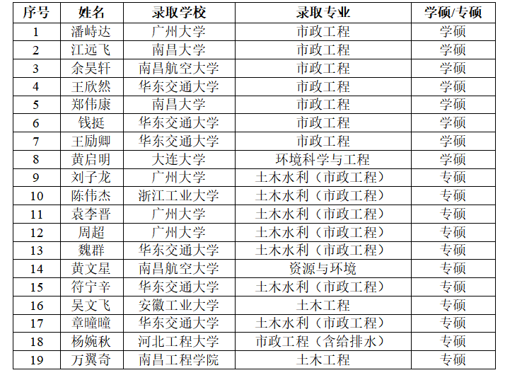 星光不问赶路人,时光不负有心人。近日,全国高校2022年硕士研究生招生考试成绩陆续公布,bevictor2018级给排水科学与工程01班佳音频传,取得了令人骄傲的考研佳绩。班级共有37位员工,录取研究生19名,占比占比51.35%。其中学硕录取8名、专硕录取11名,两位同学录取“211”高校。