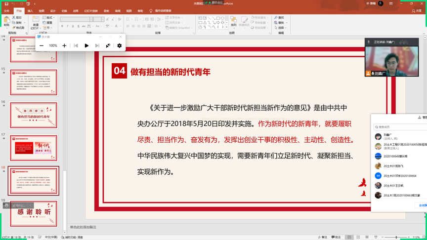 随后,在团支部书记林奕泉的带领下,一起云观看团四大相关专题视频。并围绕党史、团史,结合自身实际展开积极交流学习。