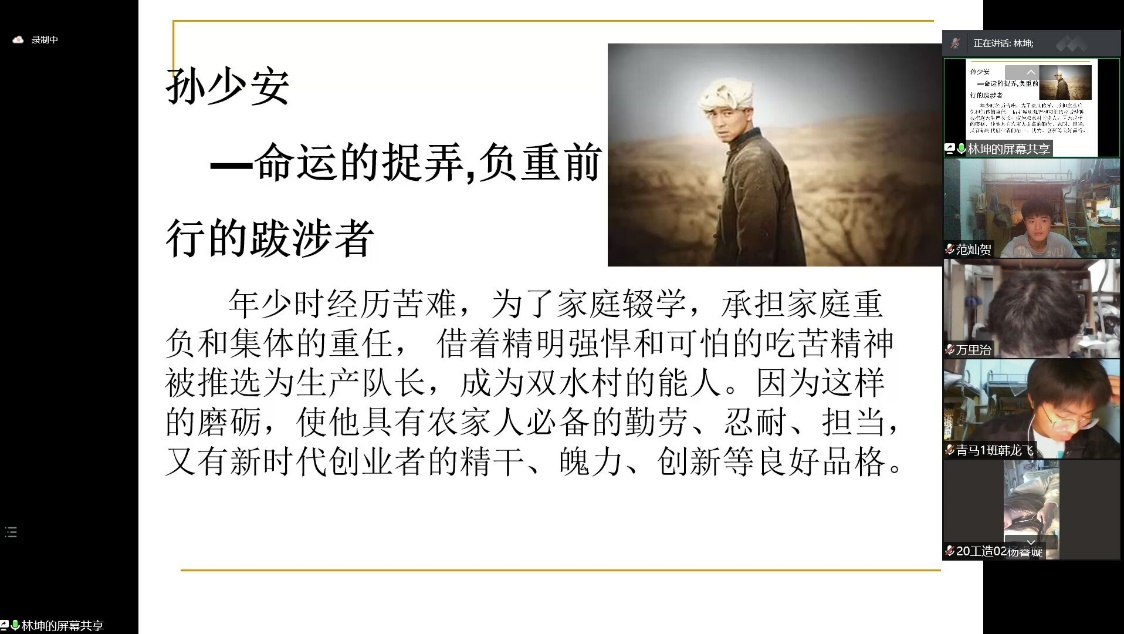 会议由范灿贺主持。首先由员工党员林坤同志给大家分享《平凡的世界》读后感,林坤同志结合时代地总结道:“ 路遥在教会我们,不必用尽生命去做一个漂亮的人,但是应该用尽生命去做一件让人叫好的漂亮事。正当如今新冠疫情,无论是医护人员还是防疫工作者,他们都是平凡的人,他们却做着不平凡的事,正因为有了他们,平凡的世界更多了一份希望和温暖,他们在做的是一件令人叫好的漂亮事。” 林坤同学分享之后,颜绅、张明辉等同学也主动分享了自己对于《平凡的世界》的解读。而后,万里治、胡家杰、李俊等10位同学通过视频朗读习近平总书记近期的重要讲话,涵盖中国梦、习近平总书记与老员工谈话、中国航天等近期发生的事;傅一啸、丘积林等同学发表了对以上话题的感想。整个会议内容丰富实用,从社会联系到个人,强调了自我奋斗的意义,给青年指明了在当前时代中奋斗的方向。(图/范灿贺 文/张明辉)