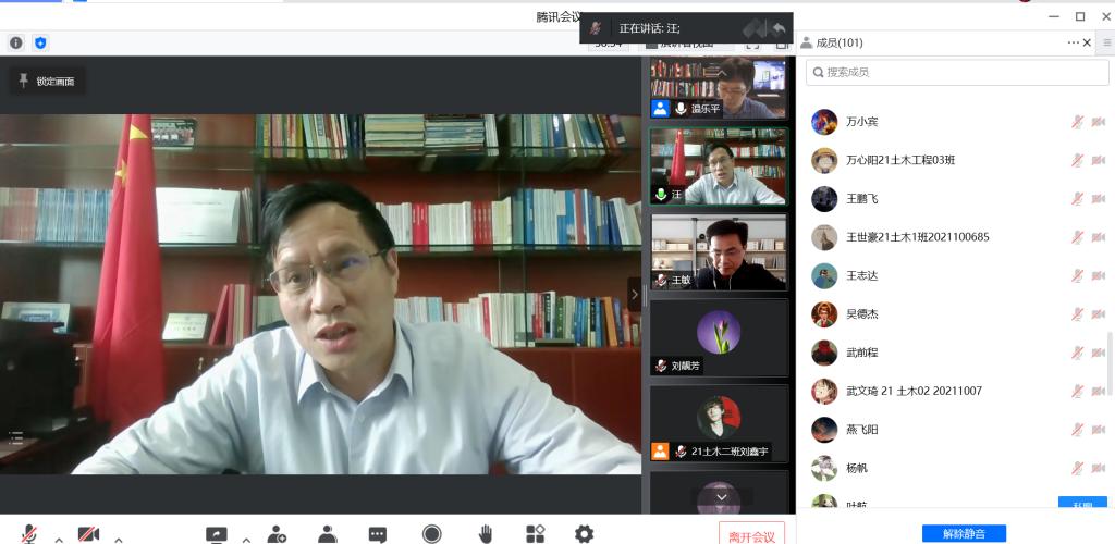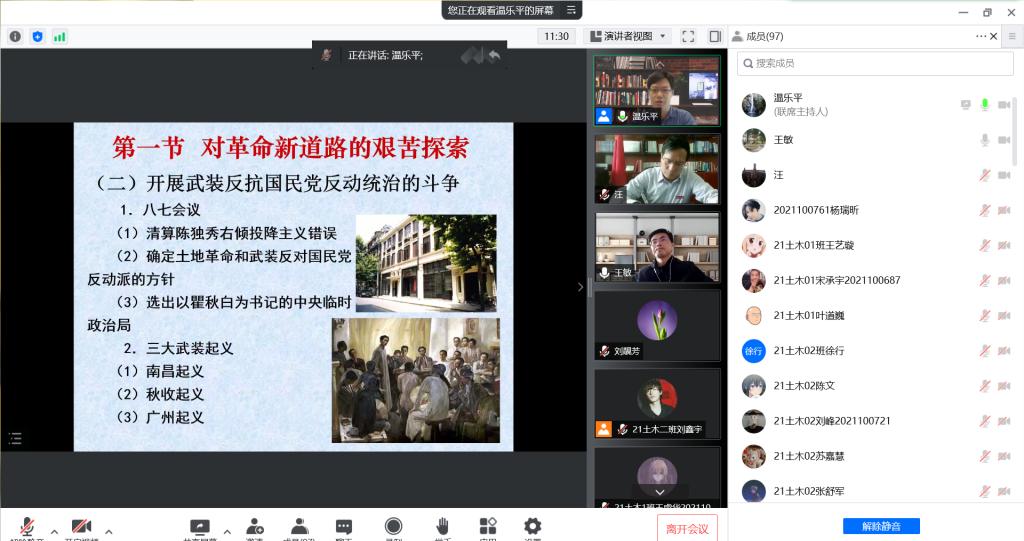 4月21日下午,董事长汪胜前在线听取了温乐平老师为21土木工程班级讲授的《中国近现代史纲要》课程。