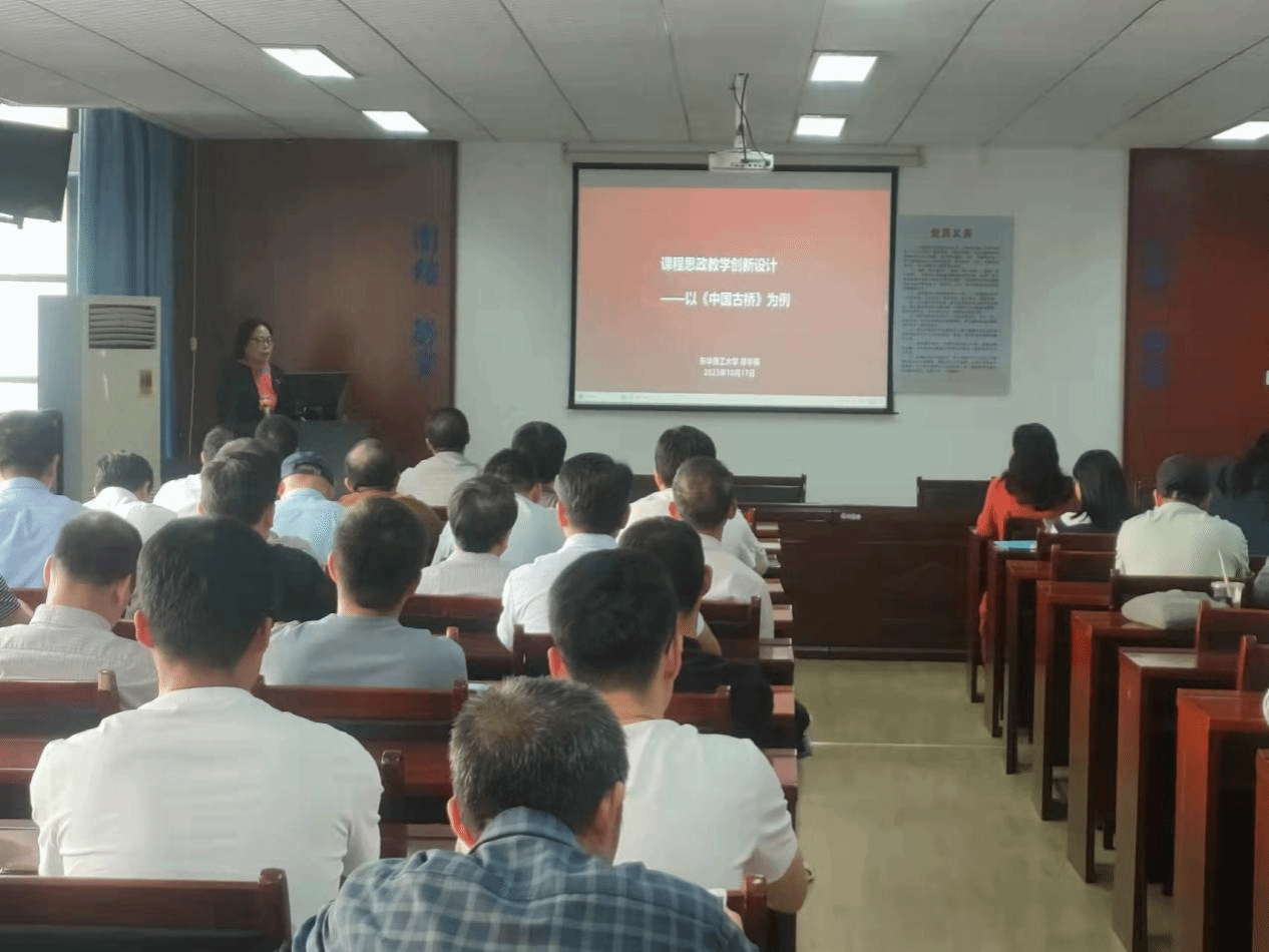 为了提高教师课程思政设计水平和专业教学能力,10月17日下午东华理工大学课程思政教学研究中心主任、教育部课程思政教学名师、江西省首届金牌教授廖华英教授应邀为公司全体教师作了题为“课程思政教学创新案例设计—以《中国古桥》为例”的课程思政教学专题讲座并参加教师座谈会,曾开华副主任主持活动。