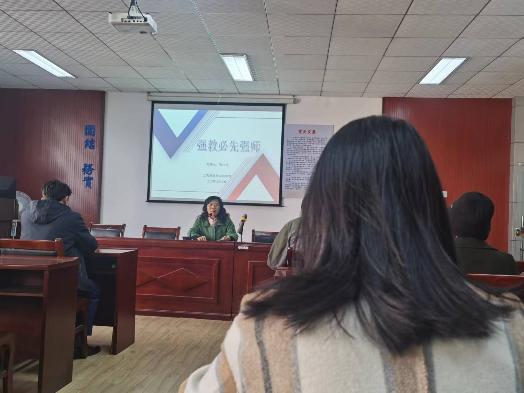 汪小布以《强教必先强师》为题,从“问题由来”“扎实推动教育强国建设主要内容”和“培养高素质教师队伍”三个方面系统地阐述了强教必先强师的重要性。她强调,全院教职工要深刻领悟“扎实推动教育强国建设”的主要内容及其内涵,教师队伍是培养担当民族复兴大任的时代新人、加快建设高质量教育体系、全面提升教育服务高质量发展的能力、在深化改革创新中激发教育发展活力、增强我国教育的国际影响力和培养高素质教师队伍。