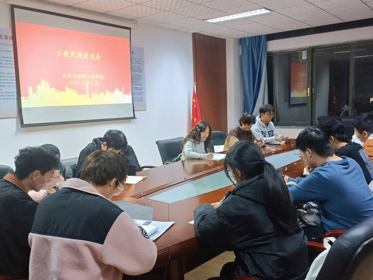为进一步学习贯彻党的二十大精神,加强与少数民族员工的沟通交流,促进民族团结进步,3月15日,土木与建筑工程公司在土建楼B207-3会议室召开了2023年少数民族代表座谈会。公司团委副书记万珊主持会议,部分少数民族员工代表参会。