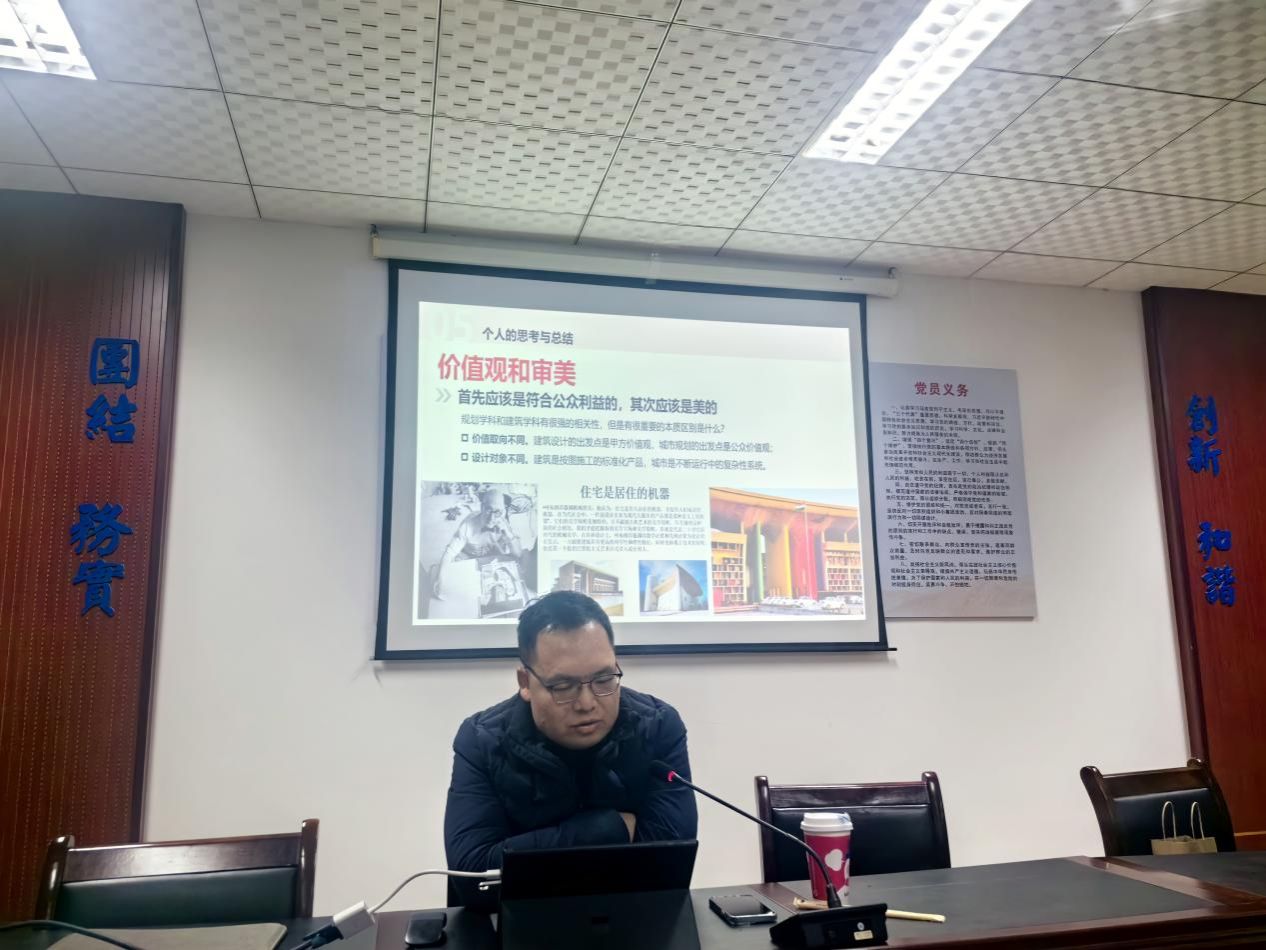 为加强城乡规划专业教师队伍建设,提升员工专业认同感,12月27日晚,bevictor在土建楼B207-1会议室开展“城市设计的学习、实践与思考”学术讲座暨主题党团日活动。活动邀请雅克设计公司技术总监、2009级城乡规划员工吴友阳主讲,公司第二教工党支部委员、城乡规划专业负责人丁芸主持,公司第二教工党支部、第三员工党支部党员代表和城乡规划团支部团员代表共计80余人到场参会。
