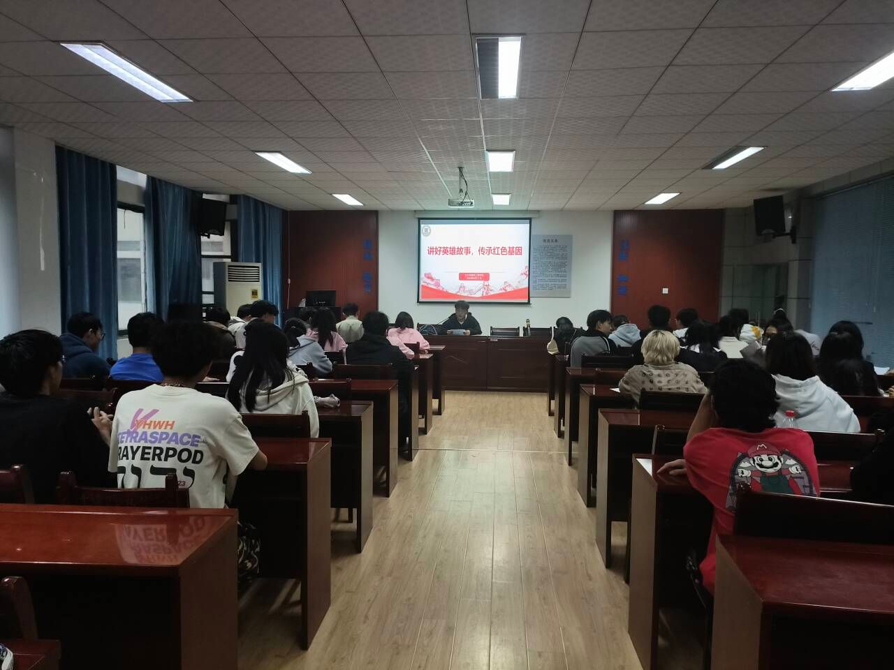 活动中,公司员工会主席团成员万里治和凌苑洁分别带来《战斗英雄张继鹏》《抗战女英雄施奇》的英雄事迹。随后,其他员工干部逐一上台讲述自己所学英雄故事,有《黄花岗七十二烈士》《抗日老英雄杨嵩》……一个个英雄事迹在同学们脑海中浮现,在这一刻,同学们从内心真正感受到英雄精神的可贵。