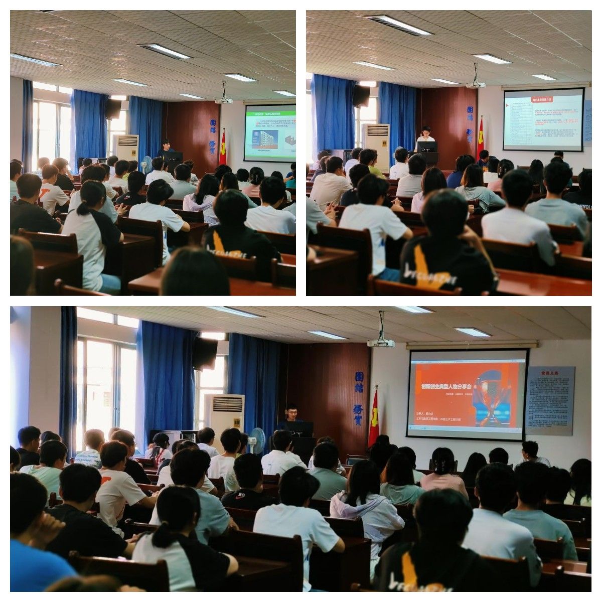 周培源力学竞赛优秀指导老师谢帮华、第十七届“挑战杯”老员工课外学术科技作品竞赛全国二等奖获得者19建筑学刘国梁、公司2022年创新创业训练计划项目负责人李森等人,分别从创新立项、科研成果展示、团队协作、参加科技竞赛的成长与收获等方面进行了分享。