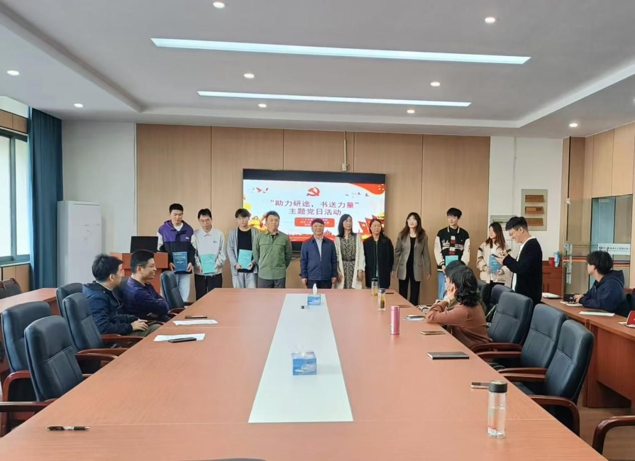 随后,开展“助力研途,书送力量”主题党日活动。第四员工党支部积极动员员工党员及广大同学捐赠考研相关书籍,一本本饱含着知识与关爱的书籍被送到了考研学子手中。道渡工造教研室党支部书记刘福明发言,感谢第四员工党支部的捐赠,肯定第四员工党支部对公司交通运输硕士点建设的支持,同时表示将充分利用这些书籍,为员工的考研提供帮助和指导。