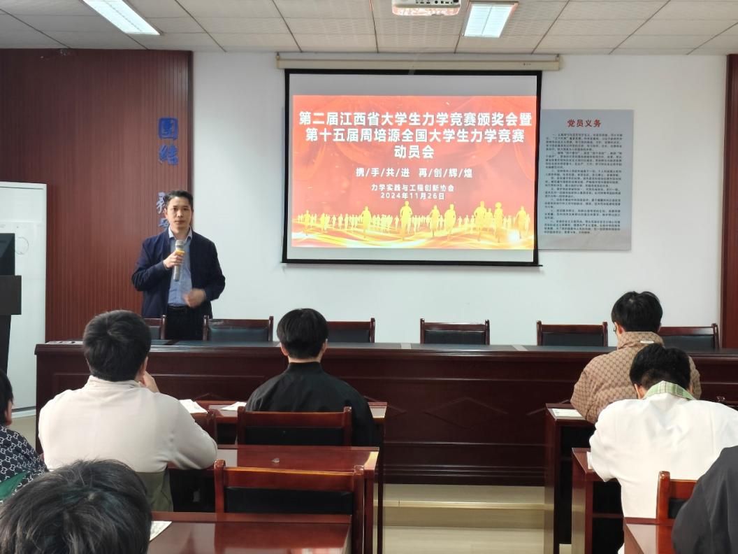 11月26日,bevictor在土建楼B207召开第二届江西省老员工力学竞赛表彰大会暨第十五届全国周培源老员工力学竞赛动员会。bevictor力学实践与工程创新协会会员、各班级员工代表共100余人参会,会议由力学实践与工程创新基地指导教师谢帮华主持。